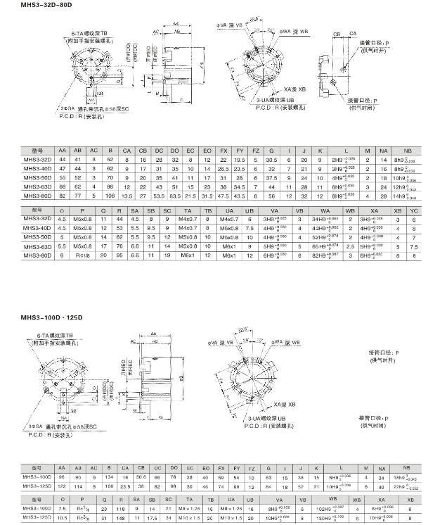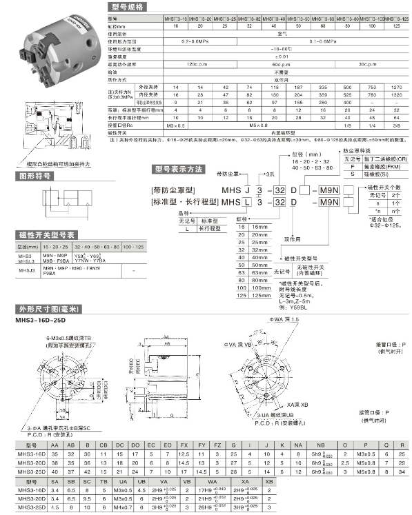 气爪气缸 MHS3-16D,MHS3-20D,MHS3-25D,MHS3-32D,MHS3-40D,MHS3-50D,MHS3-63D,MHS3-80D, MHS3-100D,MHS3-125D