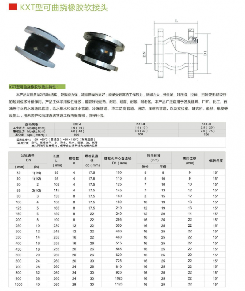 可曲挠橡胶软接头KXT-I,KXT-II,KXT-III