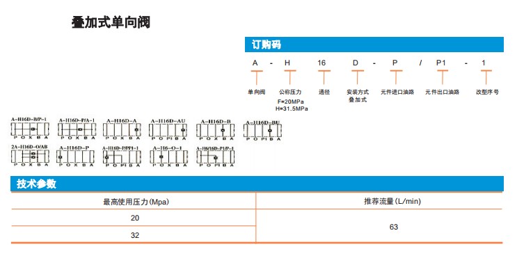 A-H16D-AU,A-H16D-B/P-1,A-H16D-P/A-1,A-F16D-AU,A-F16D-B,A-H16D-A,叠加式单向阀