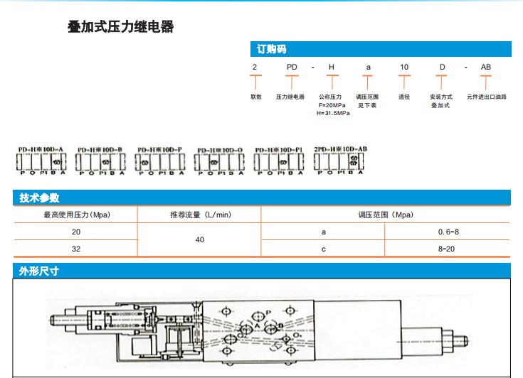 PD-Ha10D-A,PD-Ha10D-B,PD-Hc10D-P1,2PD-Hc10D-AB,叠加式压力继电器