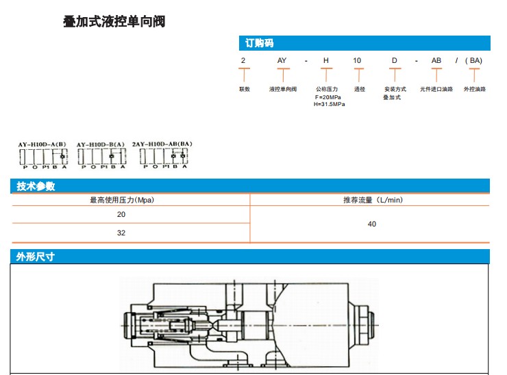 AY-H10D-A(B),AY-H10D-B(A),2AY-H10D-AB(BA),叠加式液控单向阀