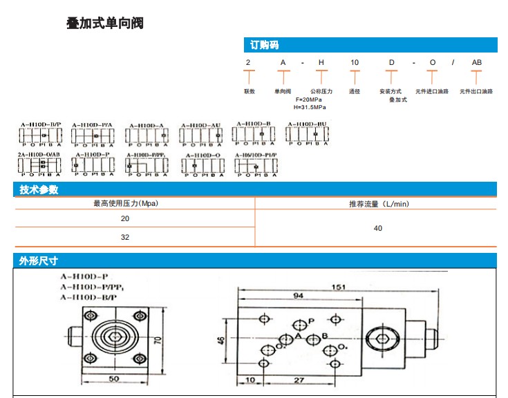 A-H10D-B/P,A-H10D-P/A,A-H10D-A,A-H10D-AU,A-H10D-B,叠加式单向阀