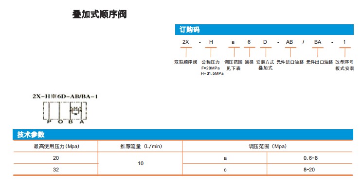 2X-Ha6D-AB/BA-1,2X-Hc6D-AB/BA-1,2X-Fa6D-AB/BA-1,2X-Fc6D-AB/BA-1,叠加式顺序阀