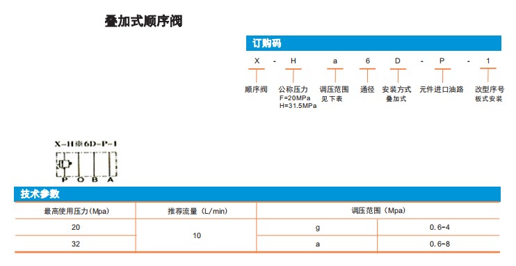 X-Ha6D-P-1,X-Hg6D-P-1,X-Fa6D-P-1,X-Fg6D-P-1,叠加式顺序阀