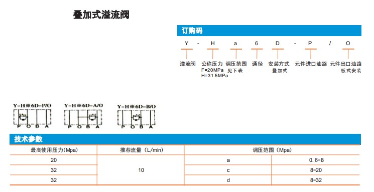 Y-Ha6D-P/O,Y-Hc6D-B/O,Y-Fa6D-A/O,Y-Fc6D-B/O,Y-Fd6D-B/O,叠加式溢流阀