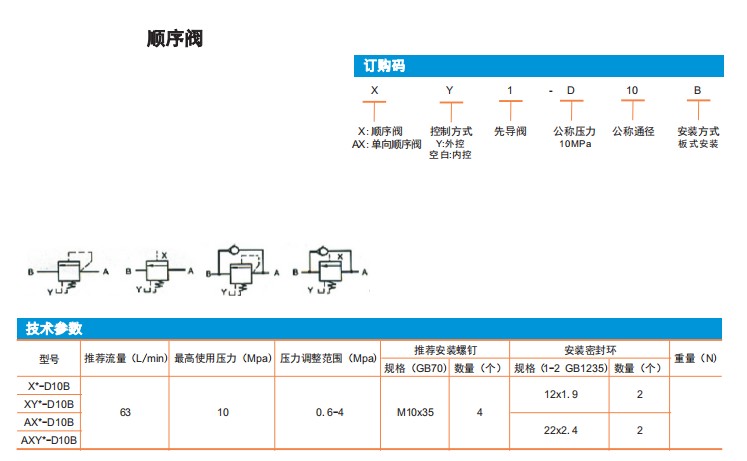 X-D10B,X1-D10B,XY-D10B,XY1-D10B,AX1-D10B,AXY-D10B,顺序阀
