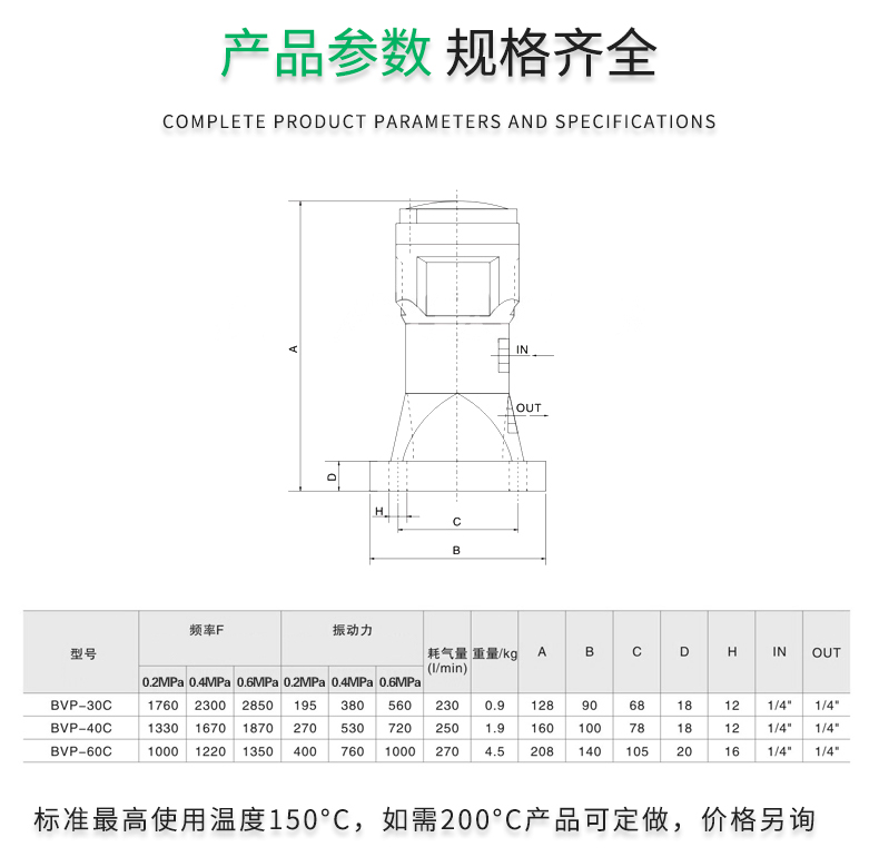 气缸式活塞往复式振动器BVP-30C,BVP-40C,BVP-60C直线冲击下料