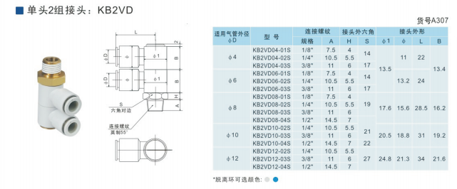 SMC型单头2组接头KB2VD04-M5,KB2VD04-01S,KB2VD04-02S,KB2VD04-03S,KB2VD06-01S,KB2VD06-02S,KB2VD06-03S,KB2VD08-01S,KB2VD08-02S,KB2VD08-03S,KB2VD10-01S,KB2VD10-02S,KB2VD10-03S,KB2VD10-04S,KB2VD12-02S,KB2VD12-03S,KB2VD12-04S,