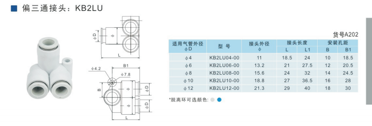 SMC型偏三通接头KB2LU04-00,KB2LU06-00,KB2LU08-00,KB2LU10-00,KB2LU12-00,