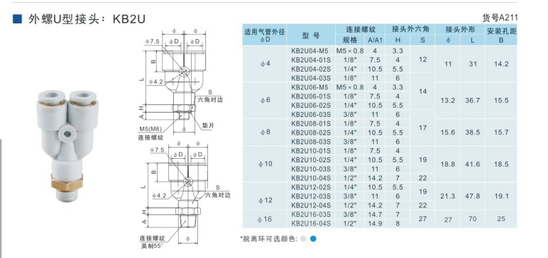 SMC型外螺U型接头KB2U04-M5,KB2U04-M6,KB2U04-01S,KB2U04-02S,KB2U06-M5,KB2U06-M6,KB2U06-01S,KB2U06-02S,KB2U06-03S,KB2U08-01S,KB2U08-02S,KB2U08-03S,KB2U08-04S,KB2U10-01S,KB2U10-02S,KB2U10-03S,KB2U10-04S,KB2U12-02S,KB2U12-03S,KB2U12-04S,KB2U12-06S,KB2U16-03S,KB2U16-04S,KB2U16-06S,
