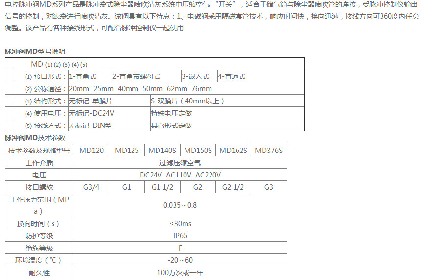 直角式脉冲阀MD120S,MD125S,MD140S,MD150S,MD162S,MD176S,