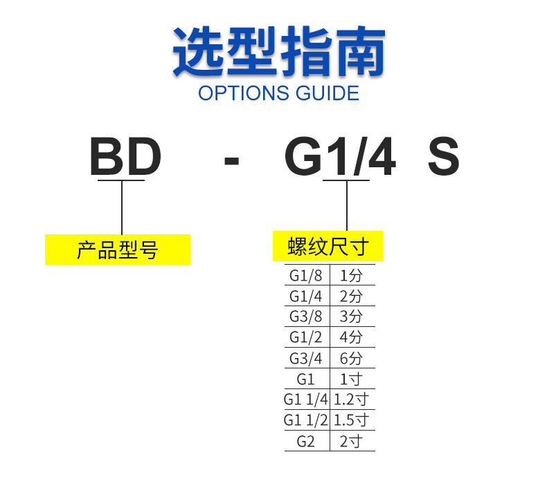 铁BD-M5 铁BD-01 1分(G1/8) 铜BD-01T 1分(G1/8) 铁BD-02 2分(G1/4) 铜BD-02T 2分(G1/4) 铁BD-03 3分(G3/8) 铜BD-03T 3分(G3/8) 铁BD-04 4分(G1/2) 铜BD-04T 4分(G1/2) 铁BD-06 6分(G3/4) 铜BD-06T 6分(G3/4) 铁BD-08 1寸(G1") 铜BD-08T 1寸(G1") 不锈钢BD-M8*1 不锈钢BD-G1/16S 不锈钢BD-PT1/16S 不锈钢BD-NPT1/16S 不锈钢BD-M10*1 不锈钢BD-G1/8S 1分 不锈钢BD-PT1/8S 不锈钢BD-NPT1/8S 不锈钢BD-M12*1.5 不锈钢BD-G1/4S 2分 不锈钢BD-PT1/4S 不锈钢BD-NPT1/4S 不锈钢BD-M14*1.5 不锈钢BD-G3/8S 3分 不锈钢BD-PT3/8S 不锈钢BD-NPT3/8S 不锈钢BD-M16*1.5 不锈钢BD-G1/2S 4分 不锈钢BD-PT1/2S 不锈钢BD-NPT1/2S 不锈钢BD-M18*1.5 不锈钢BD-G3/4S 6分 不锈钢BD-PT3/4S 不锈钢BD-NPT3/4S 不锈钢BD-M20*1.5 不锈钢BD-G1S 1寸 不锈钢BD-PT1S 不锈钢BD-NPT1S 不锈钢BD-M22*1.5 不锈钢BD-G11/4S 1.2寸 不锈钢BD-PT11/4S 不锈钢BD-NPT11/4S 不锈钢BD-M24*1.5 不锈钢BD-G11/2S 1.5寸 不锈钢BD-PT11/2S 不锈钢BD-NPT11/2S 不锈钢BD-M27*1.5/2 不锈钢BD-G2S 2寸 不锈钢BD-PT2S 不锈钢BD-NPT2S 不锈钢BD-M30*1.5/2 不锈钢BD-M33*1.5/2 不锈钢BD-M36*1.5/2