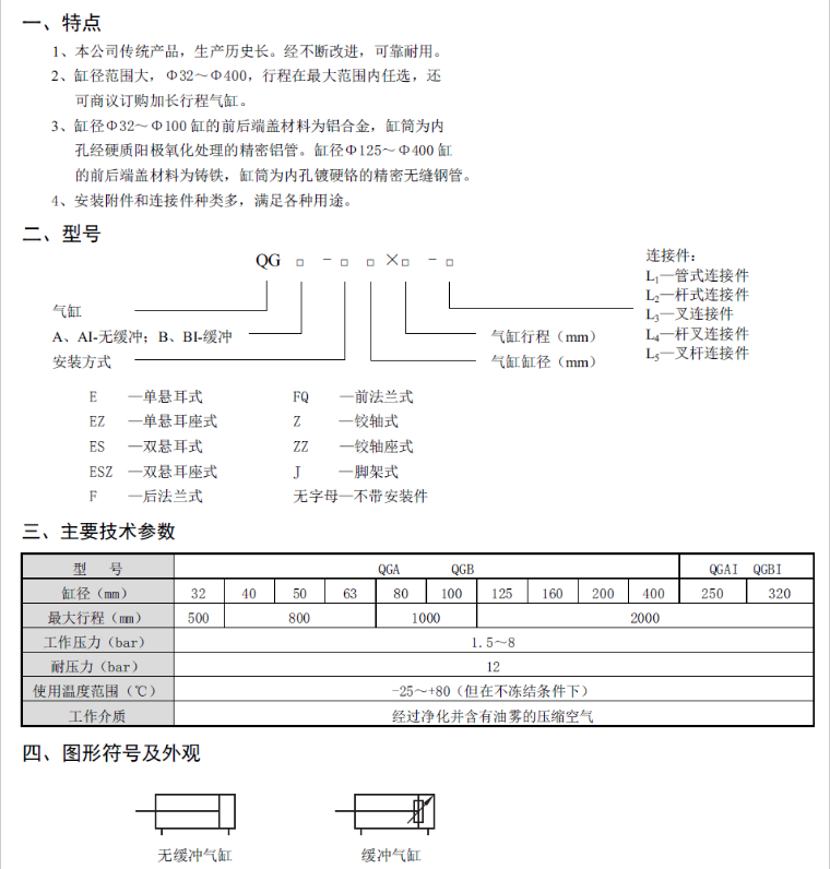 QGA320x1600,QGA320x1700,QGA320x1800,QGA320x1900,QGA320x2000气缸