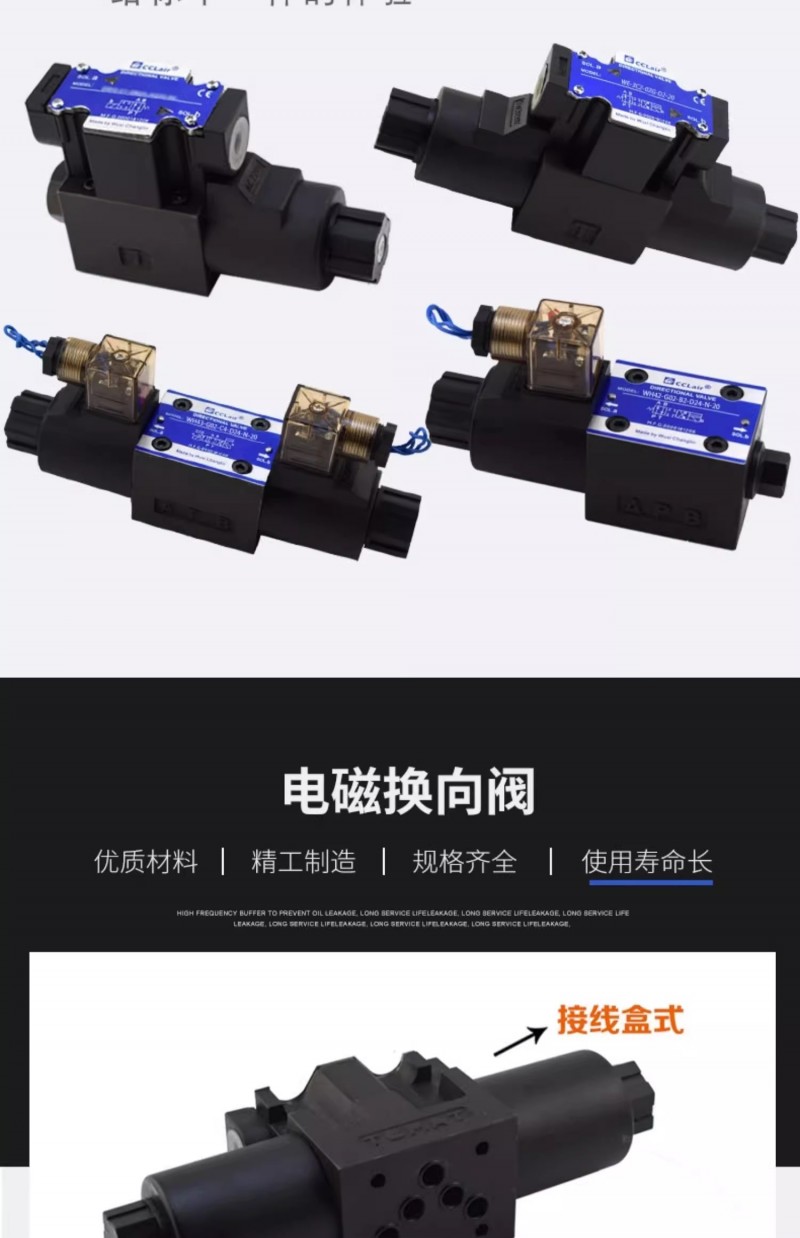 液压阀特优的浸油式电磁动作设计作动子於系统中的油内作动,具有缓动作用,即使在高压力,