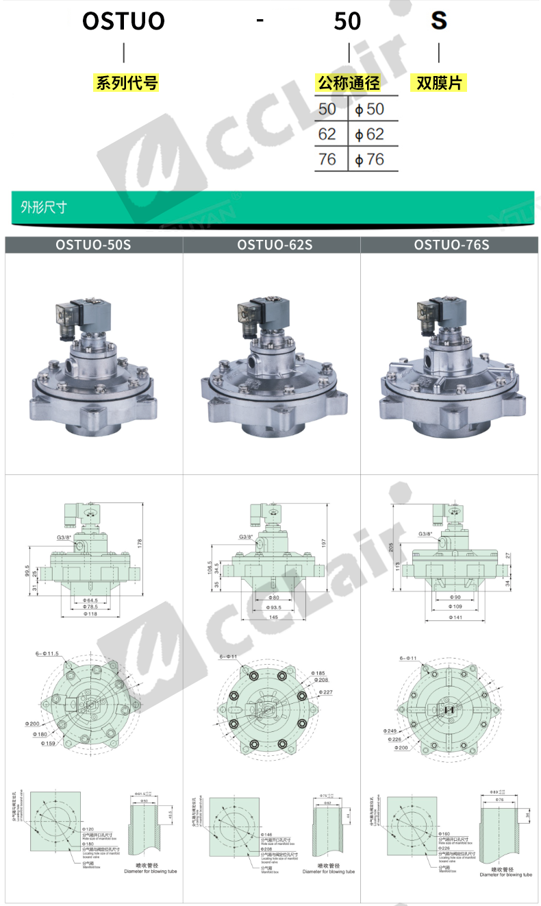 OSTUO-50S,OSTUO-62S,OSTUO-76S,OSTUO淹没式脉冲阀