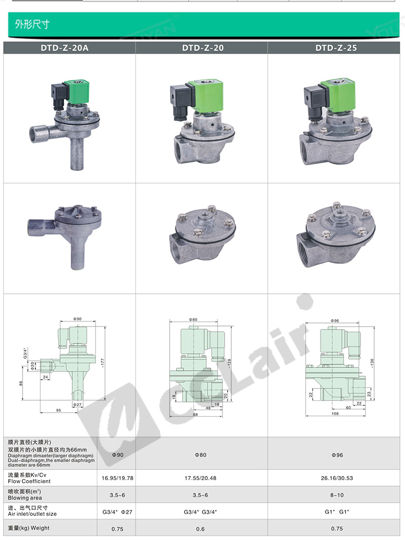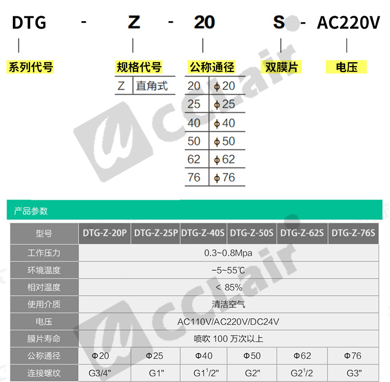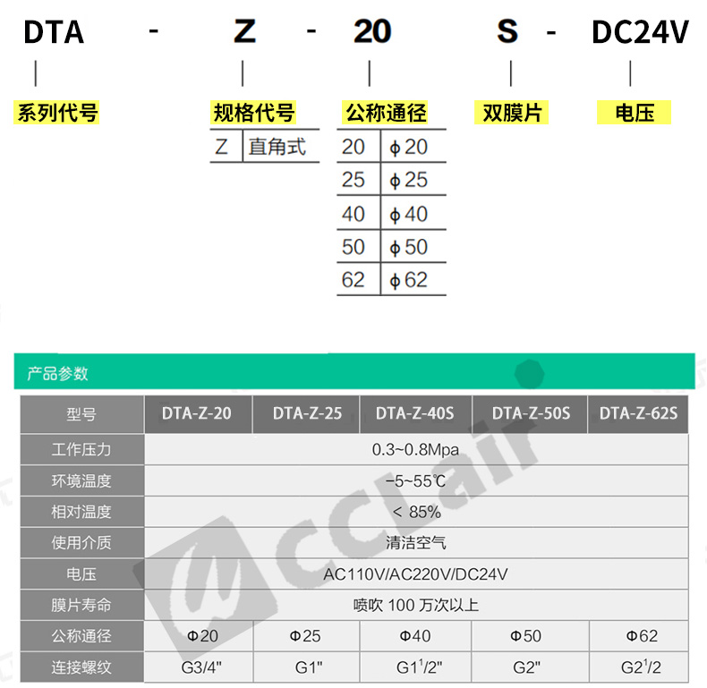 DTH-Z-25J,DTH-Z-40S,DTH-Z-50S, DTH直角式脉冲阀