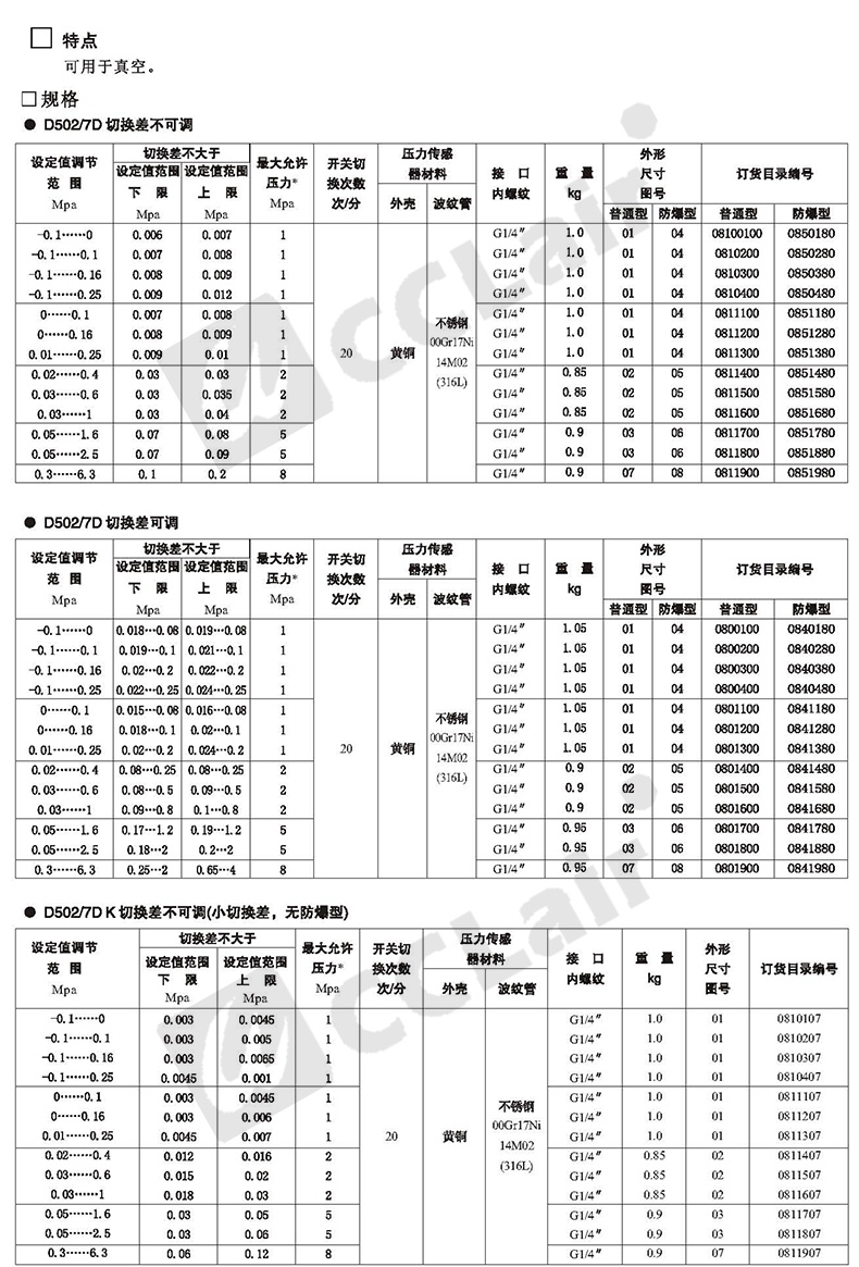 0850180,0851580,0850280,0851680,压力控制器 防爆 D502/7D切换差不可调 0850380,0851780,0850480,0851880, 0851180,0851280,0851380,0851480,