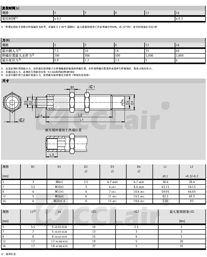 DYSW4-6Y1F,DYSW5-8Y1F,DYSW7-10Y1F,DYSW8-14Y1F,DYSW10-17Y1F,DYSW12-20Y1F, 油压缓冲器DYSW