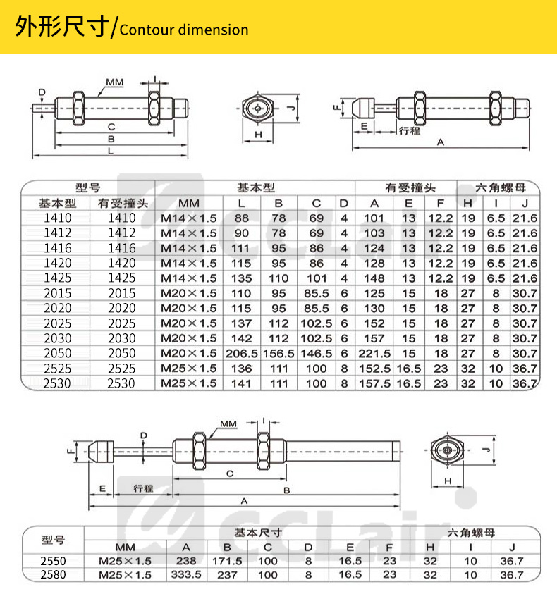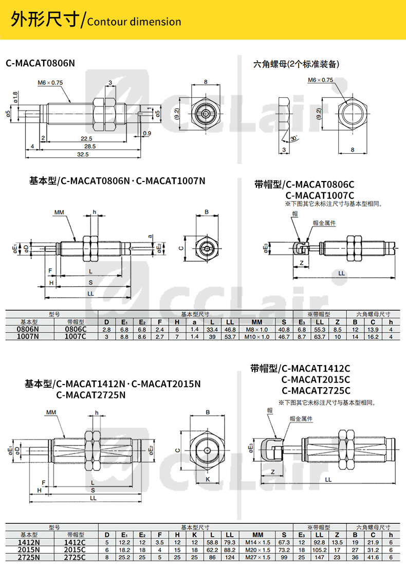 C-MACAT0806N,C-MACAT0806C,C-MACAT1007N,C-MACAT1007C,C-MACAT1210N,C-MACAT1210C,油压缓冲器C-MACAT不可调,米思米型 C-MACAT1412N,C-MACAT1412C,C-MACAT2015N,C-MACAT2015C,C-MACAT2525N,C-MACAT2525C, C-MACAT2725N,C-MACAT2725C,