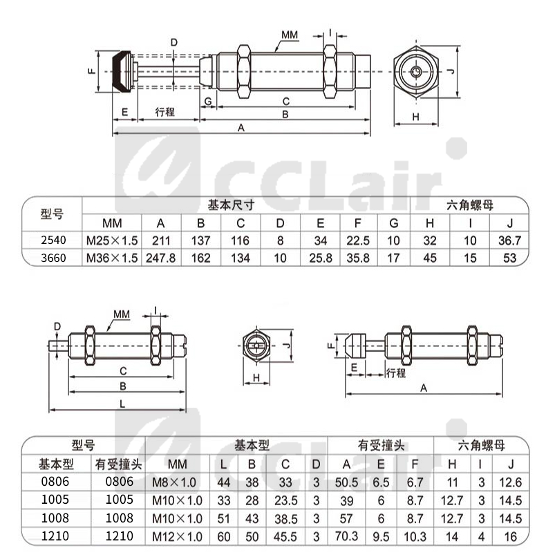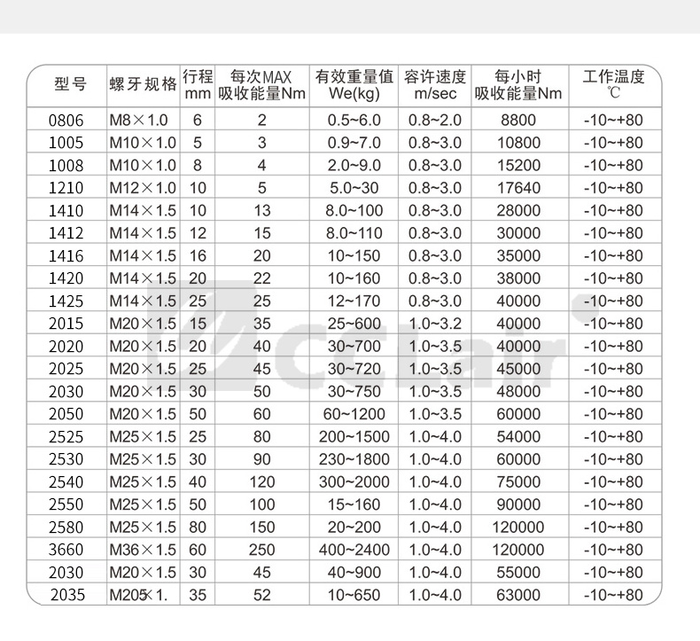 C-MACAT0806N,C-MACAT0806C,C-MACAT1007N,C-MACAT1007C,C-MACAT1210N,C-MACAT1210C,油压缓冲器C-MACAT不可调,米思米型