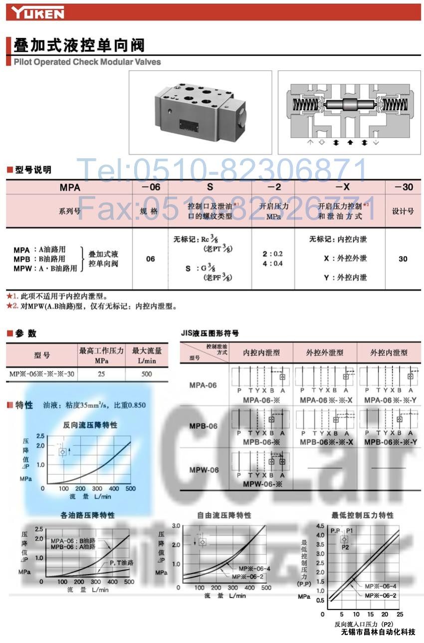 MPA-06S-2-X-30,MPA-06S-2-Y-30,叠加式液控单向阀,榆次油研叠加式液控单向阀,YUKEN叠加式液控单向阀