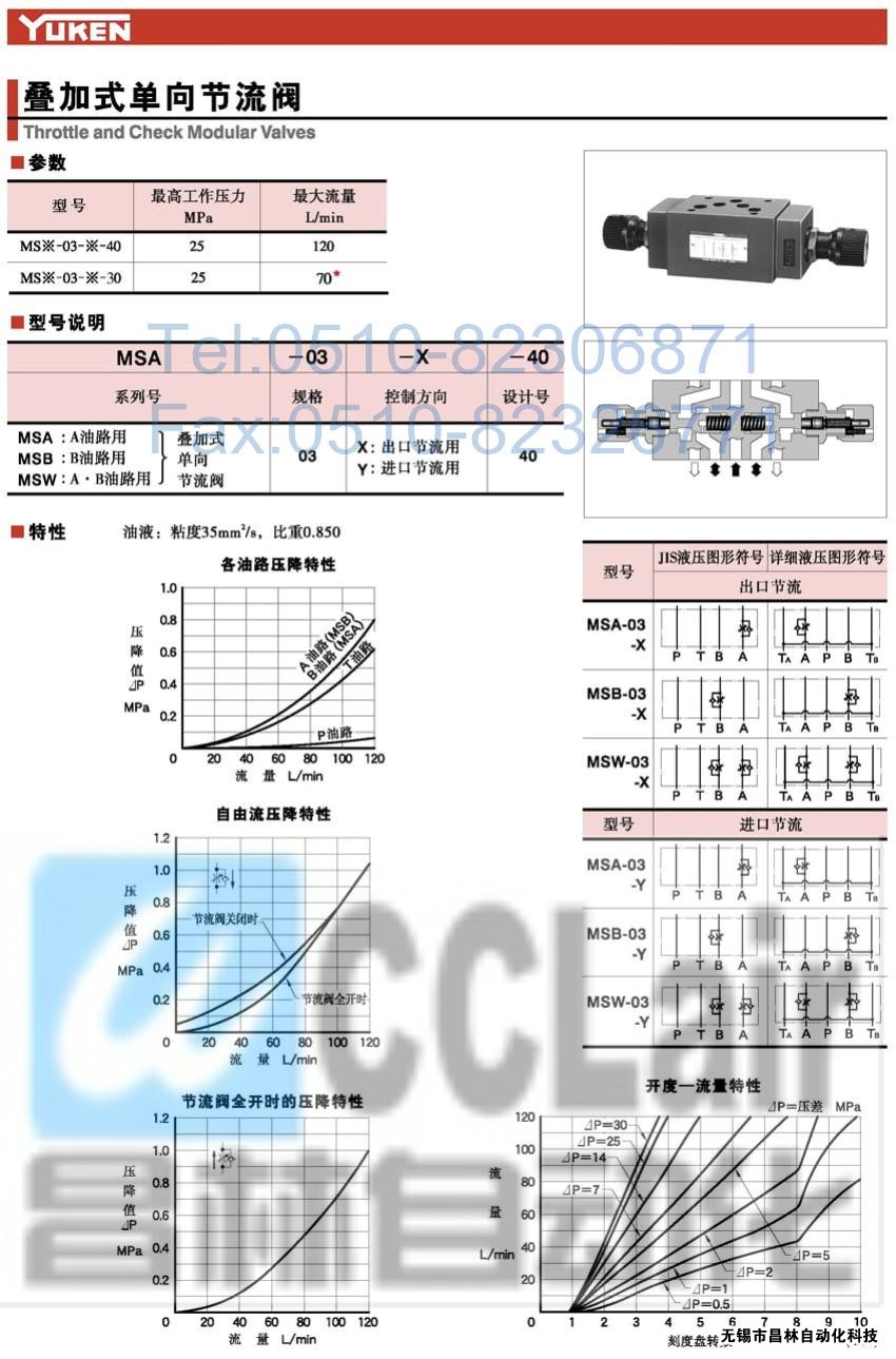 MSA-03-X-40,MSA-03-Y-40,MSB-03-X-40,叠加式单向节流阀,榆次油研叠加式单向节流阀,YUKEN叠加式单向节流阀