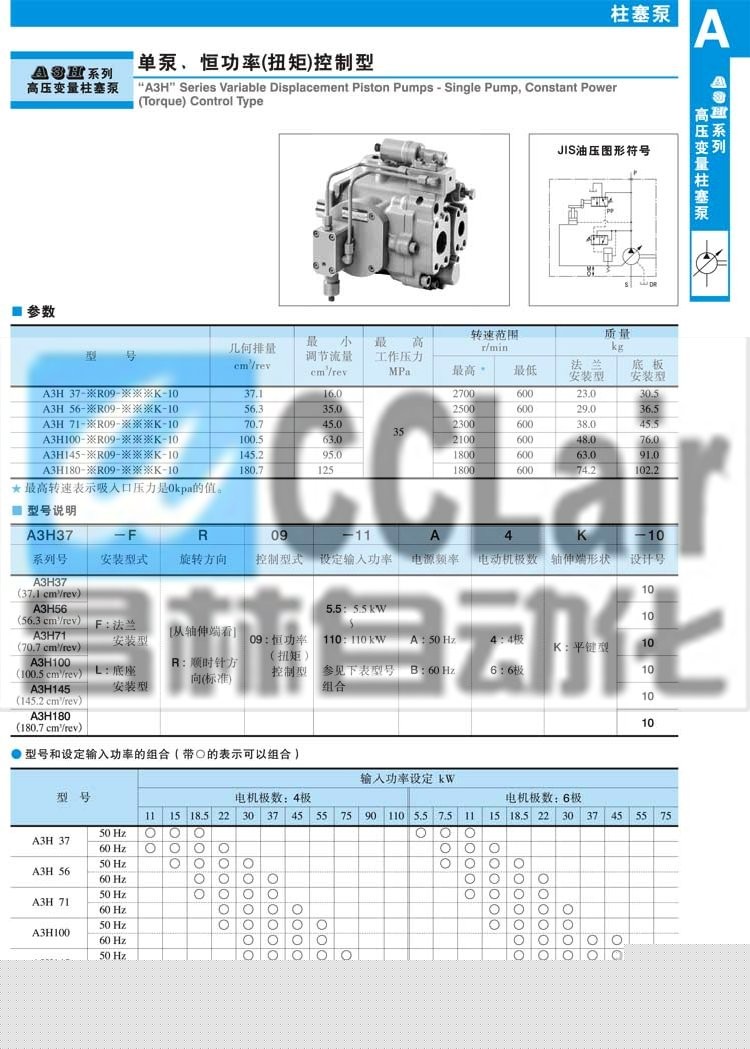 A3H71-FR09-18.5A4K-10,A3H71-FR09-11A6K-10,A3H37-LR09-11A6K-10,高压变量柱塞泵