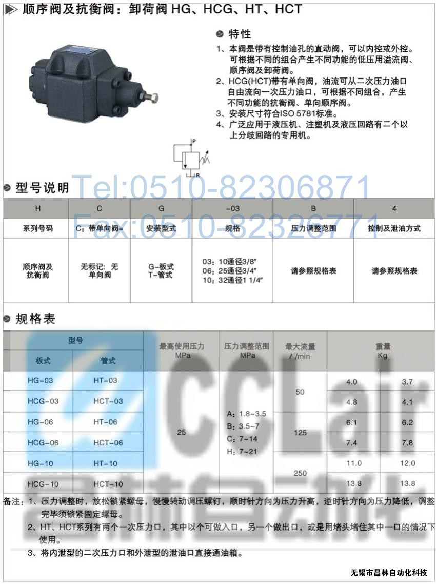 HCT-03A,HCT-03B,HCT-03C,HCT-03H,HCT-06A,HCT-06B,HCT-06C,HCT-06H,卸荷阀,卸荷阀价格,卸荷阀生产厂家,昌林卸荷阀,无锡卸荷阀