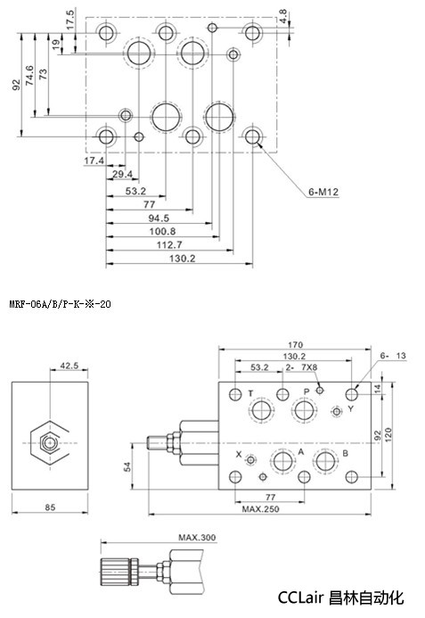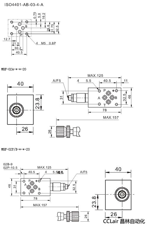 四、MRF叠加式溢流阀安装尺寸: