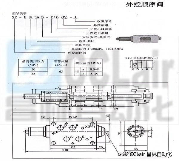 XY-Fa16D-P/O(P1)-1, XY-Fc16D-P/O(P1)-1,单向顺序阀,