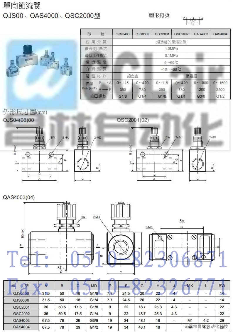 0600,QSC2001,QSC2002,QAS4003,QAS4004,单向节流阀,生产厂家,价格