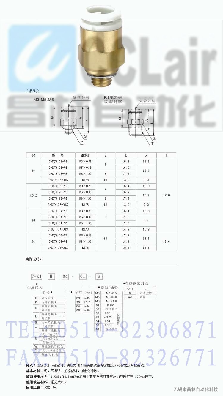 C-KJH06-M5,C-KJH06-M6,C-KJH06-01S,直通接头,生产厂家,价格