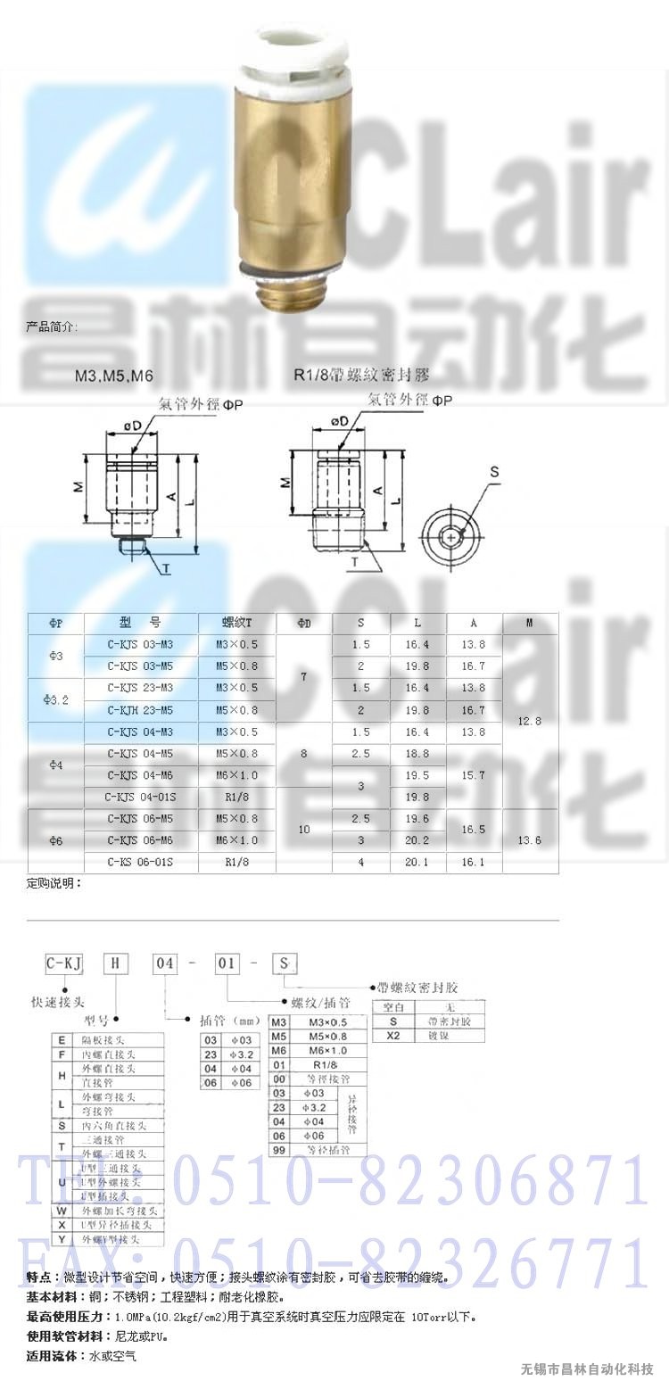 C-KJS06-M5,C-KJS06-M6,C-KJS06-01S,内六角直通接头,