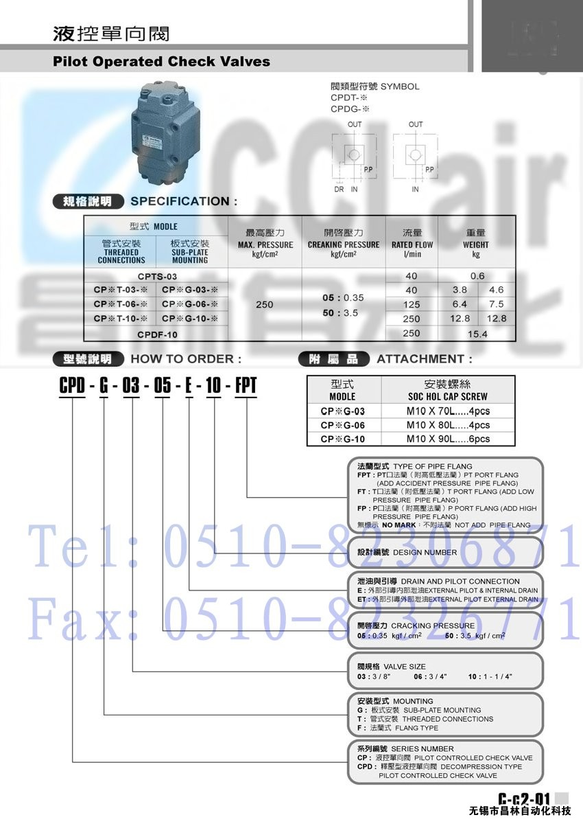 CPD-G-03-05-E-10-FT,CPD-G-03-05-ET-10-FPT,液控单向阀,生产厂家,价格,昌林液控单向阀,液控单向阀生产厂家,液控单向阀价格