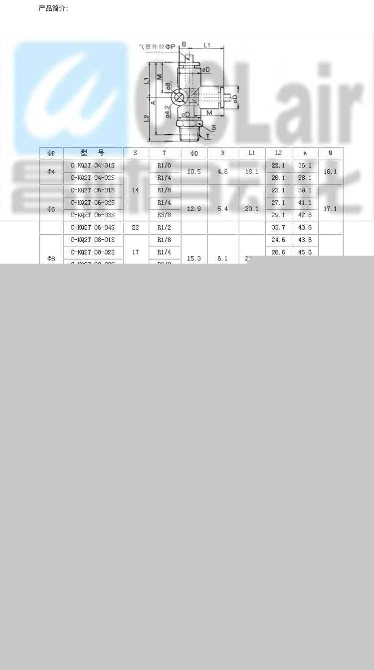 C-KQ2T10-01S,C-KQ2T10-02S,C-KQ2T10-03S,C-KQ2T10-04S, 外螺Y型接头 ,生产厂家,价格