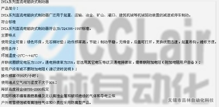 ZWZA-400,ZWZA-500,ZWZA-600,ZWZA-700,ZWZA-800,直流电磁块式制动器