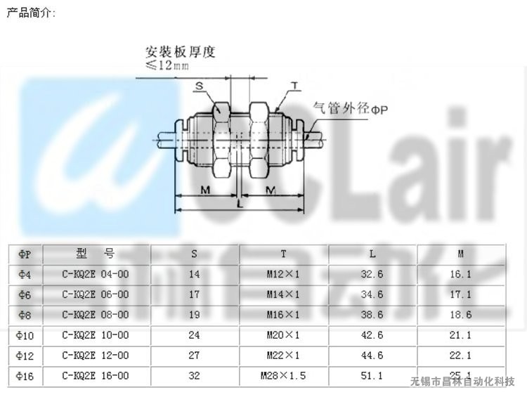C-KQ2E10-00,C-KQ2E12-00,C-KQ2E16-00, 隔板安装直通接管,生产厂家,价格