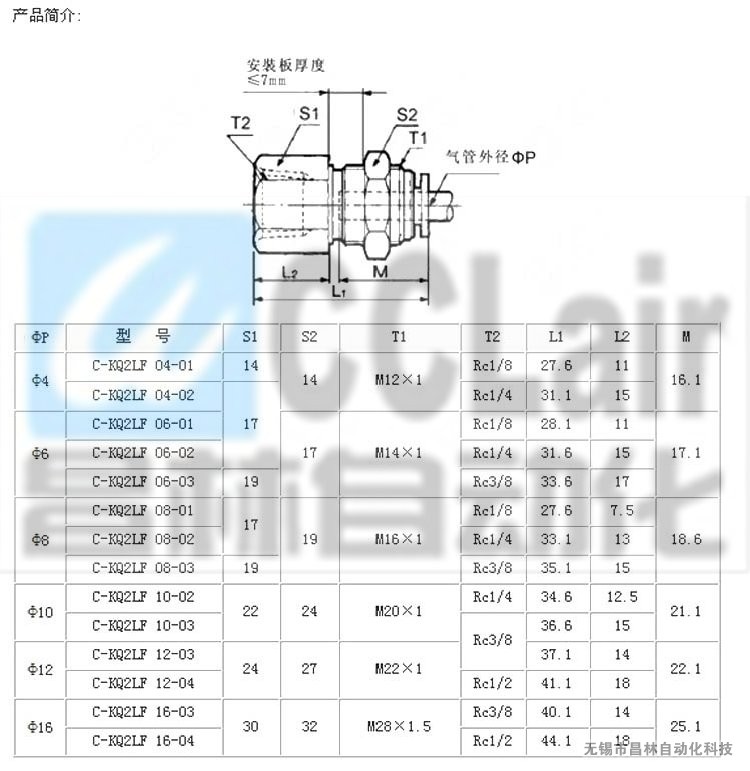 C-KQ2LF06-01,C-KQ2LF06-02,C-KQ2LF06-03,隔板安装直通螺纹内接头,生产厂家,价格
