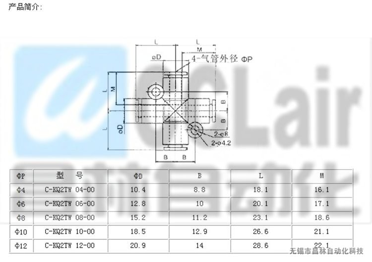 C-KQ2TW04-00,C-KQ2TW06-00,C-KQ2TW08-00,十字形接管,