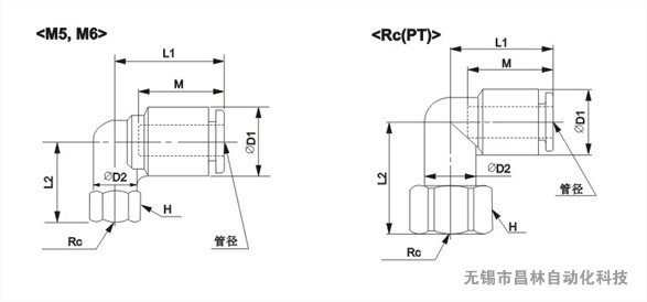 MODEL | 管径 | Rc(PT) | H | φD1 | φD2 | L1 | L2 | M | CT(mm2) | 重量 |