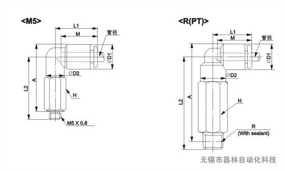 MODEL | 管径 | R | H | φD1 | φD2 | L1 | L2 | A | M | CT(mm2) | 重量 |