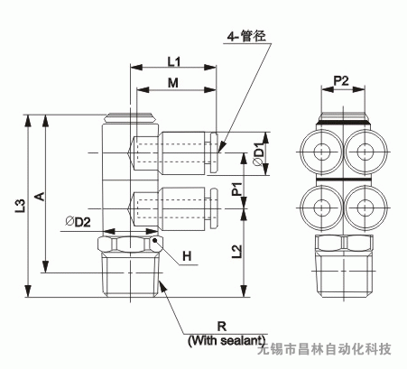 MODEL | 管径 | R | H | φD1 | φD2 | L1 | L2 | L3 | A | M | P1 | P2 | 重量 |