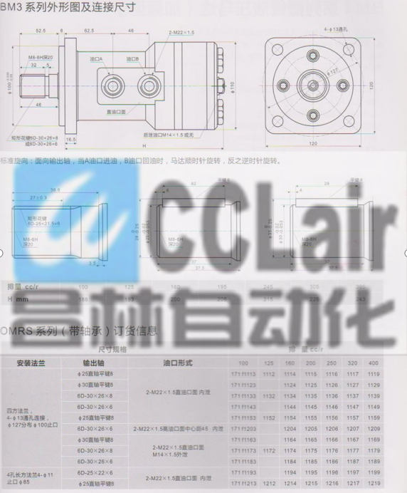 BM3-100,BM3-125,BM3-160,BM3-200,BM3-245,BM3-305,BM3-395摆线液压马达