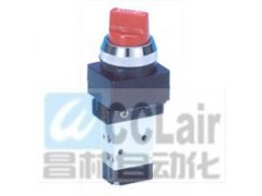 旋钮式人控阀分直动式和先导式两种,主要用作控制气路的开关和改变控制气路的方向,可发出气信号给气控换向阀使其换向,也可控制中、小型气缸动作,输出力作功。通径8mm的阀为先导式,3mm阀为直动式。先导式较直动式操作力要小。