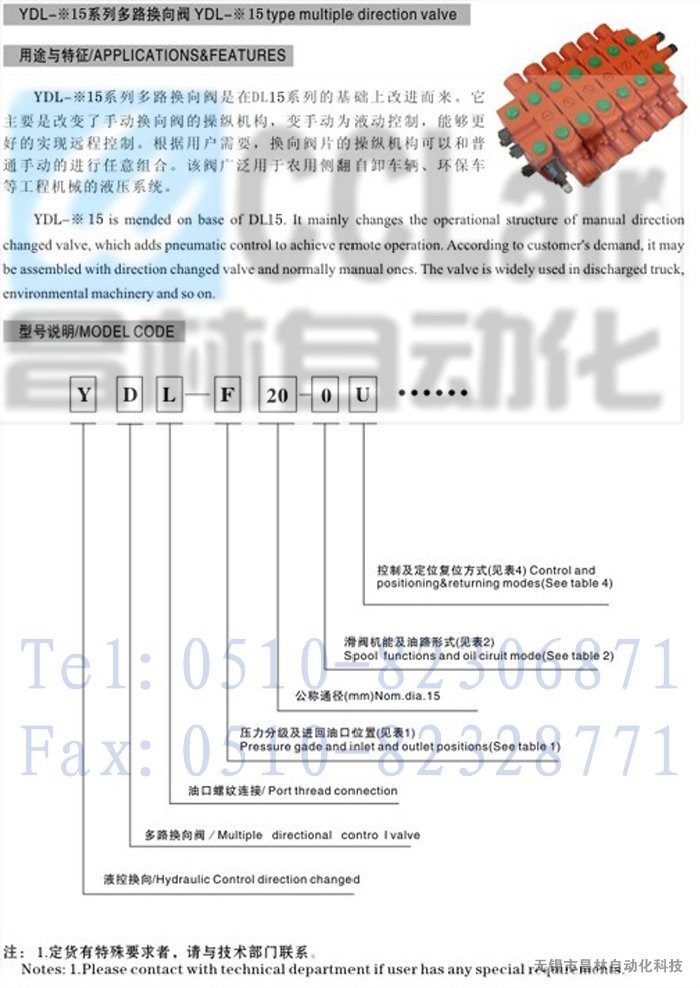 YDL-H15-MT,YDL-H15-MW,YDL-H15-MQ,YDL-H15-MU,YDL-H15-KT,YDL-H15-KW,多路换向阀