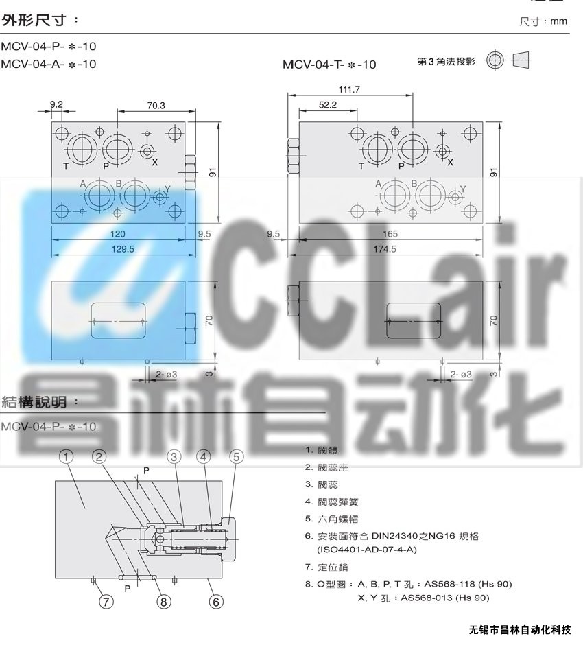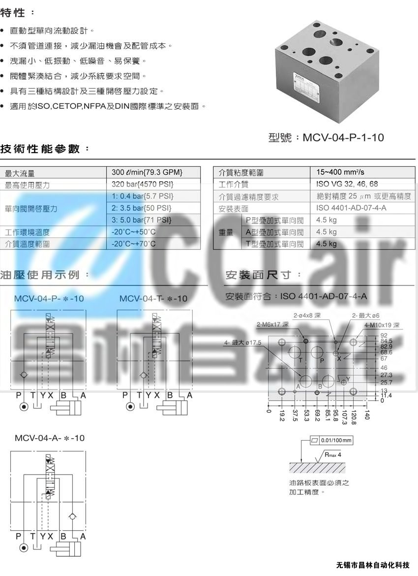 MCV-04-P,MCV-04-T,MCV-04-A,叠加式单向阀