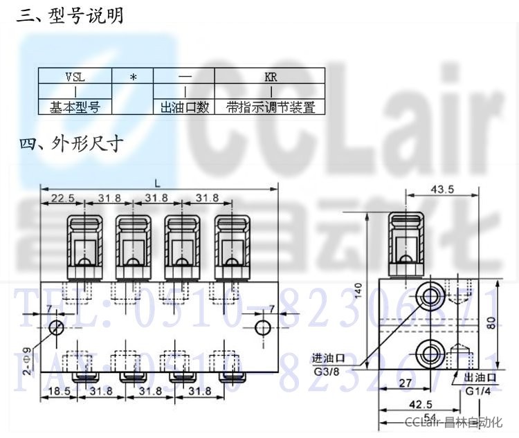 VSL-KR型双线分配器上下面均有给油口,分配器活塞正反向动作时分别从上面和下面的给油口排出润滑脂;在相应上、下给油口内设有合二为一的排油结构,要改变奇数出油,只需将孔内的螺钉拧出即可。还可以从指示杆的动作直接观察分配器的工作情况,同时还可以通过调整螺钉在规定范围内调整各出油口的给油量。