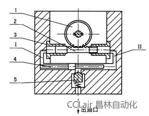 手动润滑泵是人工扳动手柄,通过齿轮1带动齿轮活塞2往复运动实现给脂的。当活塞处于图示右端极限位置时,左端油腔容积增大形成真空,于是贮油筒内的润滑剂在弹簧和活塞片的作用下从吸油口吸入活塞左端油腔内。当活塞向左移动时,被吸入的润滑剂压入孔道Ⅰ并把滑阀4推向右端极限位置,顶开单向阀5从出油口排出,此时,活塞右端油腔容积逐渐增大,润滑剂被吸入,在活塞返回向右移动时,充满润滑剂的油腔又逐渐变小,挤压润滑剂进入孔道Ⅱ,推动滑阀4向左移动,顶开单向阀5从出油口排出,泵底部配装换向阀,扳动换向手柄至左右二极限位置可实现双线供剂。 | ![]() |