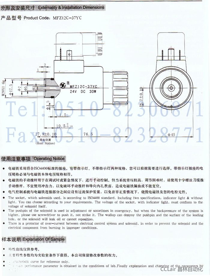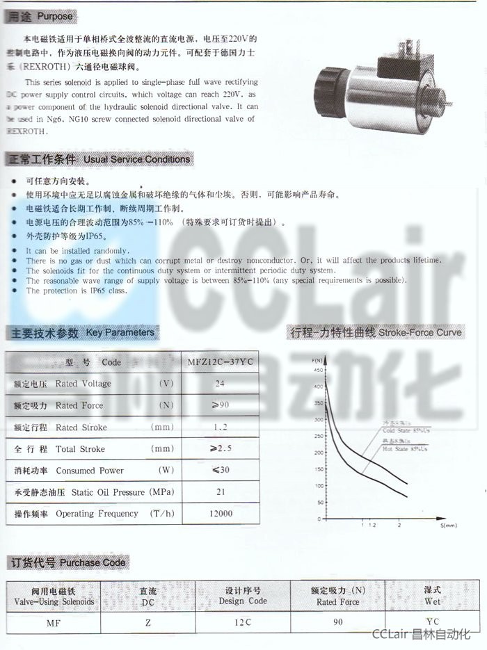 MFZ12C-37YC,直流湿式阀用电磁铁