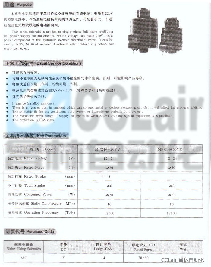 MFZ14-20YC,MFZ14-60YC,直流(接线盒式)湿式阀用电磁铁,生产厂家,价格